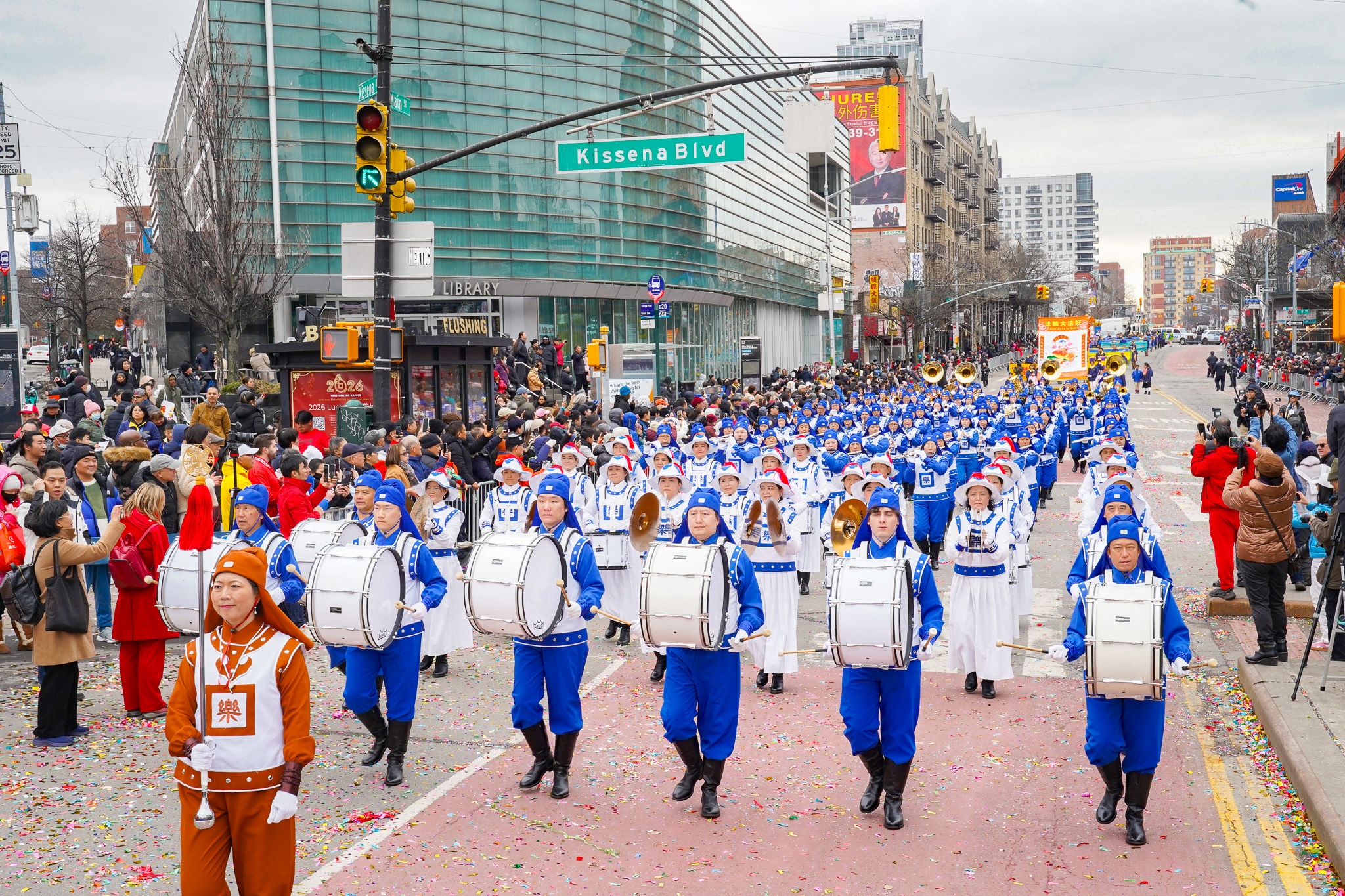 Bắt đầu từ năm 1996, cuộc diễu hành năm mới ở Flushing là cuộc diễu hành mừng năm mới có quy mô lớn nhất khu vực Bắc Mỹ. Năm nay đánh dấu cột mốc kỷ niệm 30 năm, khung cảnh vô cùng hân hoan và náo nhiệt. Tại trung tâm Flushing, tiếng chiêng trống rộn ràng, rồng bay sư tử múa, những lời chúc Tết vang lên không ngớt.