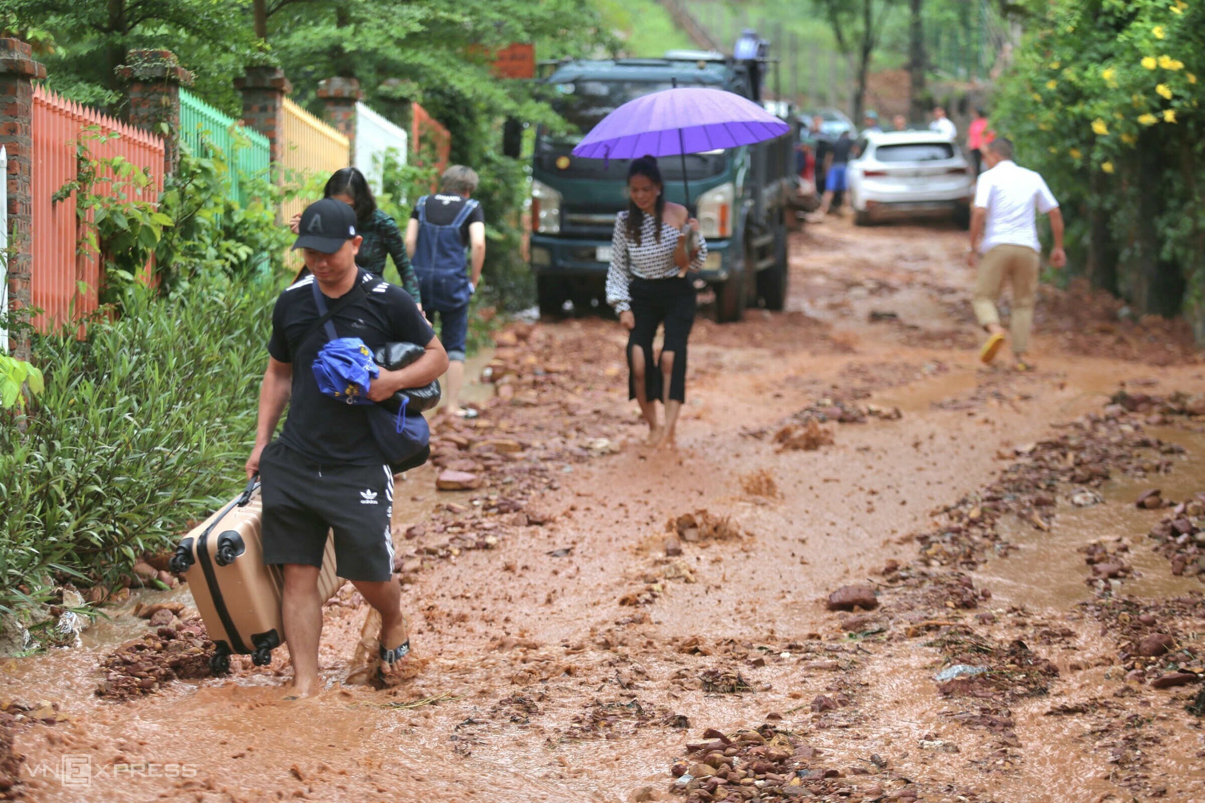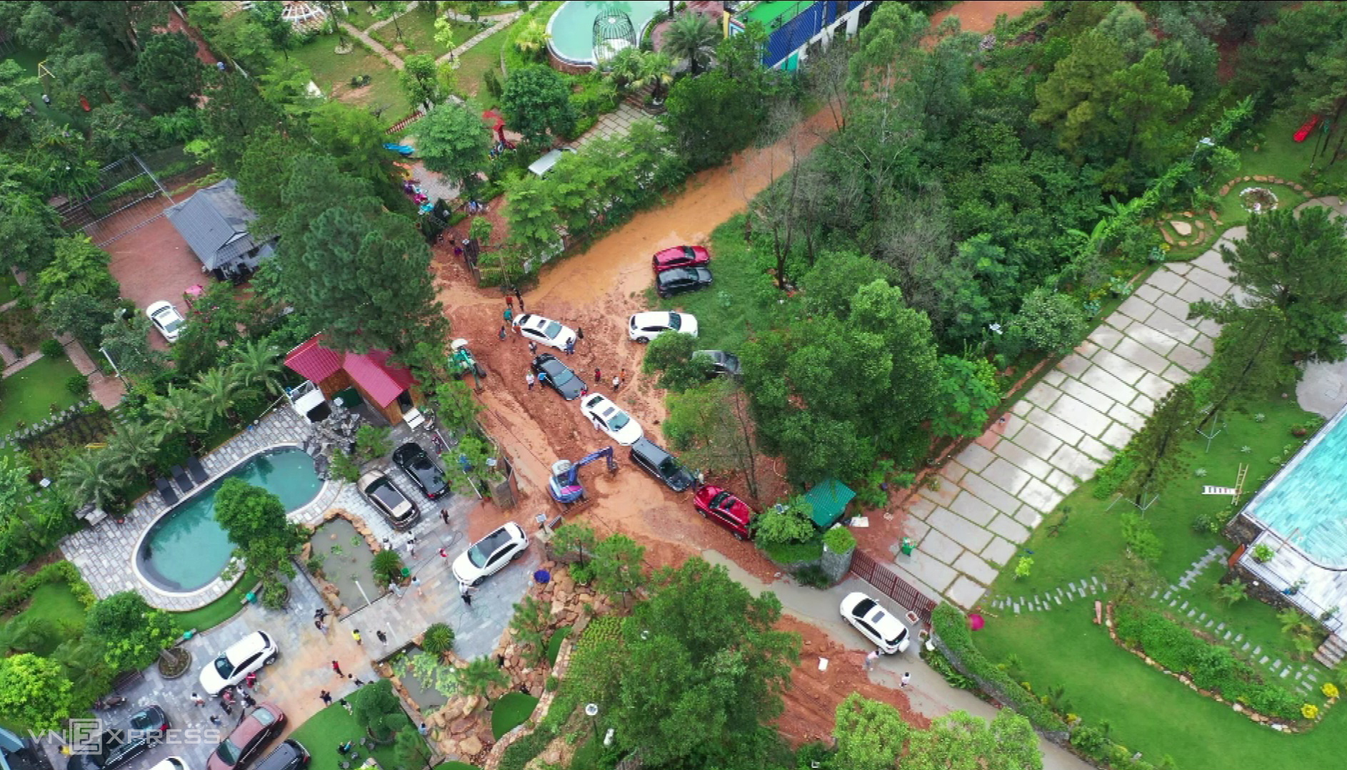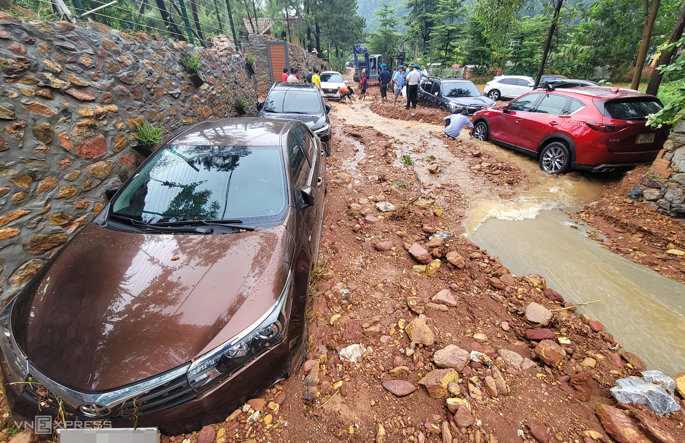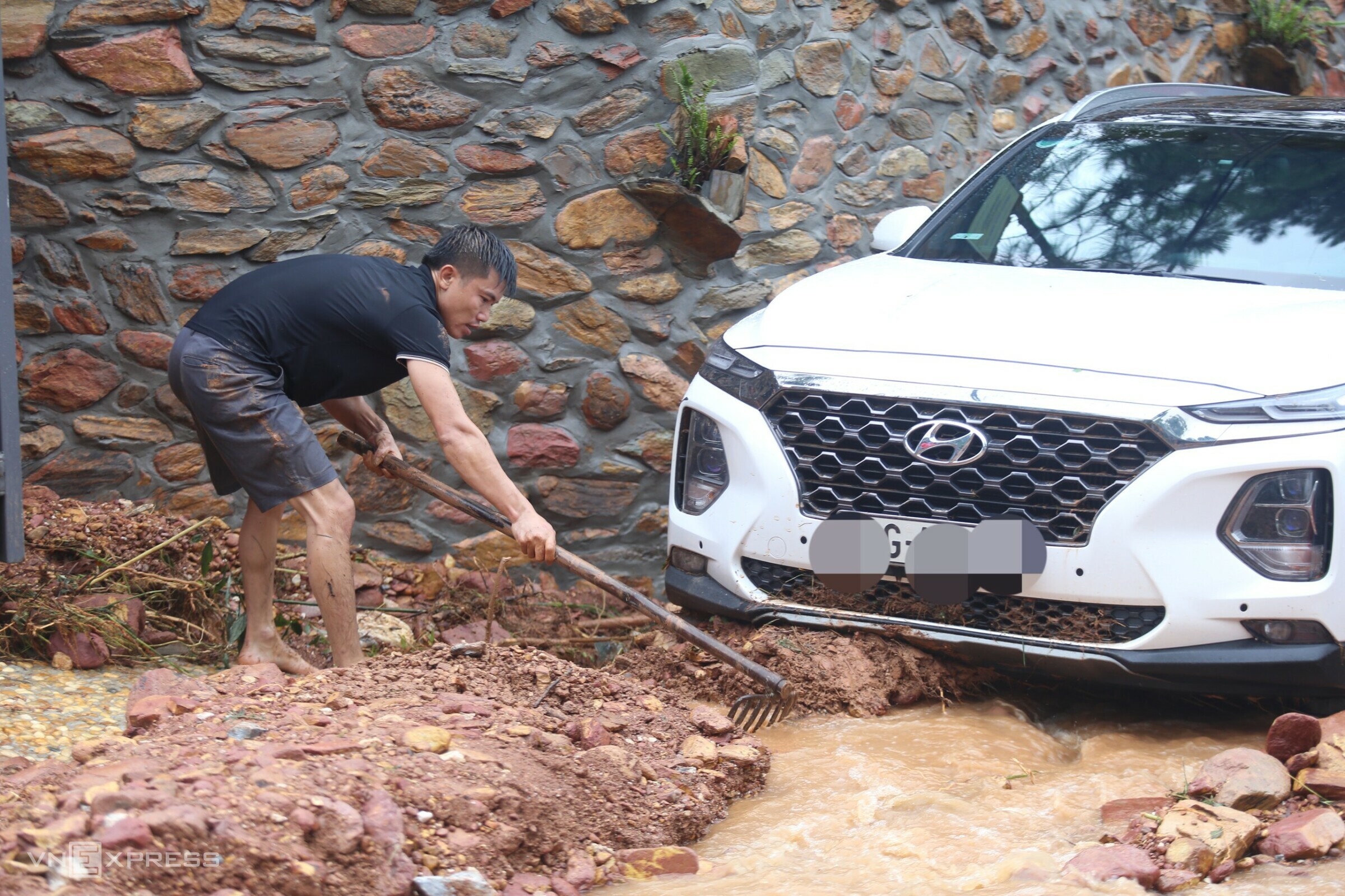 Một chủ xe tên Bình cho biết, thời điểm lũ quét, trời mưa rất to, anh và một số bạn bè đang ở trong khu nghỉ dưỡng nghe tiếng ầm ầm, chạy ra thì thấy đất đá cùng dòng nước đỏ quạch tràn qua ôtô. “Chúng tôi bất lực, chỉ dám đứng nhìn vì nước chảy quá siết”, anh Bình nói.