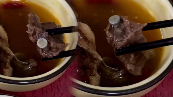 Ngay từ năm 2023, tại thành phố Liễu Châu, Quảng Tây, đã lan truyền video cho thấy khách hàng phát hiện một chiếc đinh kim loại gắn trong xương, trong món canh xương tại một nhà hàng. Đoạn video này có thể thấy rõ mũ đinh, các cư dân mạng có kiến thức y tế xác định đây là một chiếc đinh titan dùng trong phẫu thuật.