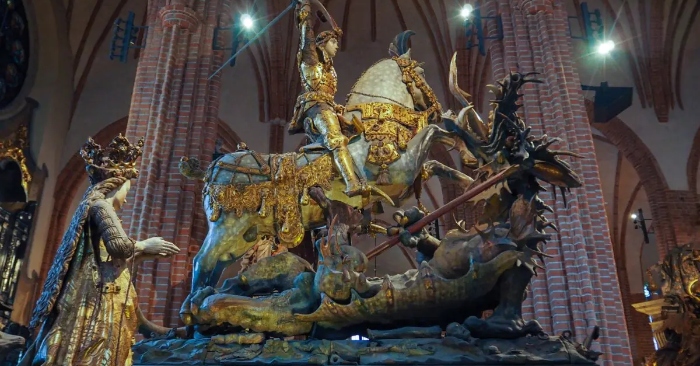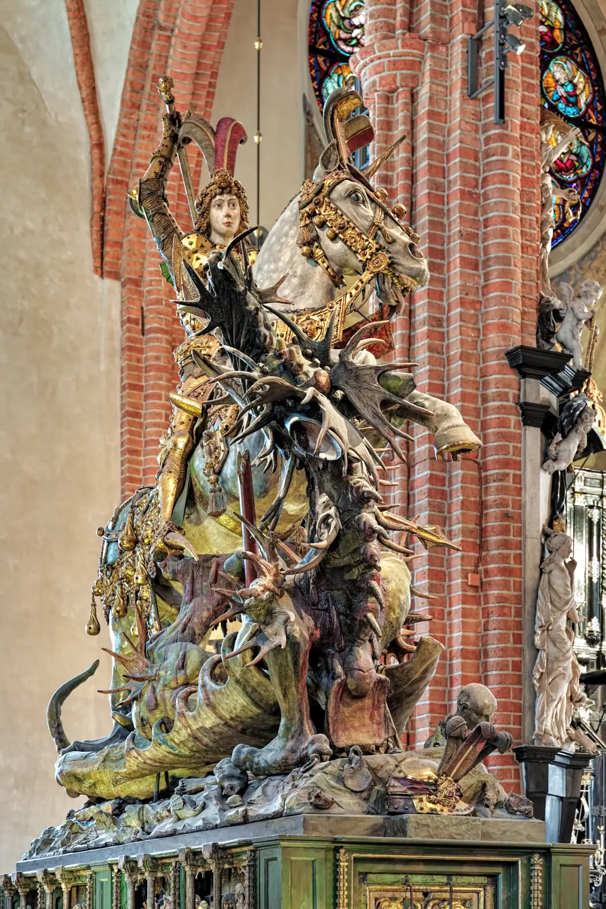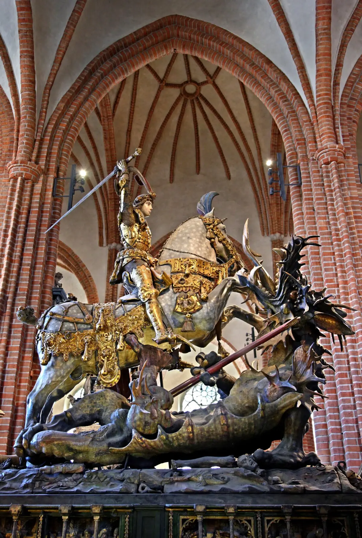 Tác phẩm điêu khắc “Thánh George và con rồng” của Notke là một ví dụ điển hình cho kỹ nghệ bậc thầy, diễn giải một cách sống động cuộc đối đầu vĩnh cửu giữa thiện và ác.