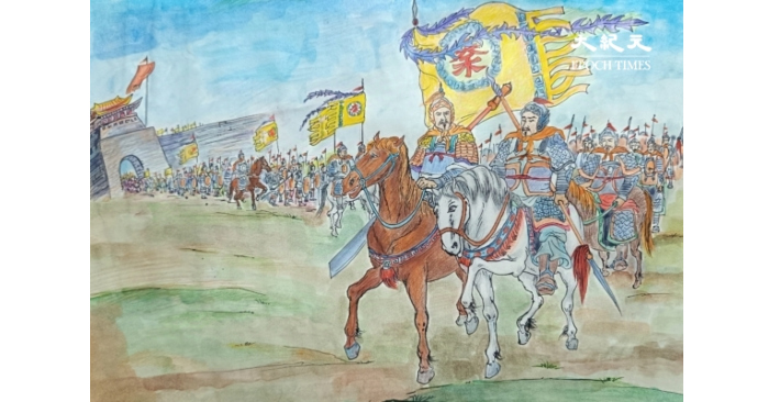 Hình: Tần Vương Lý Thế Dân dẫn quân xuất chinh. (Ảnh: Thanh Ngọc/The Epoch Times)